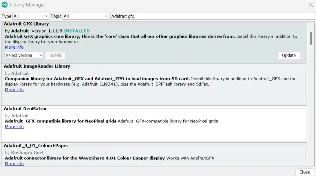 Library manager for Arduino IDE