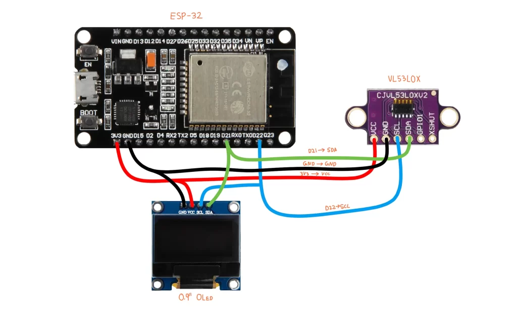 Using VL53L0X is really easy; there are tons of projects there from which you can learn, but it is always good to start from the basics to build a solid foundation. So will build a simple project using ESP32 that will read the distance from the sensor using I2C pins and give the output. Don’t worry, you won’t have to do any complicated calculations or coding. Everything is done by the ESP32, and the library will be used.